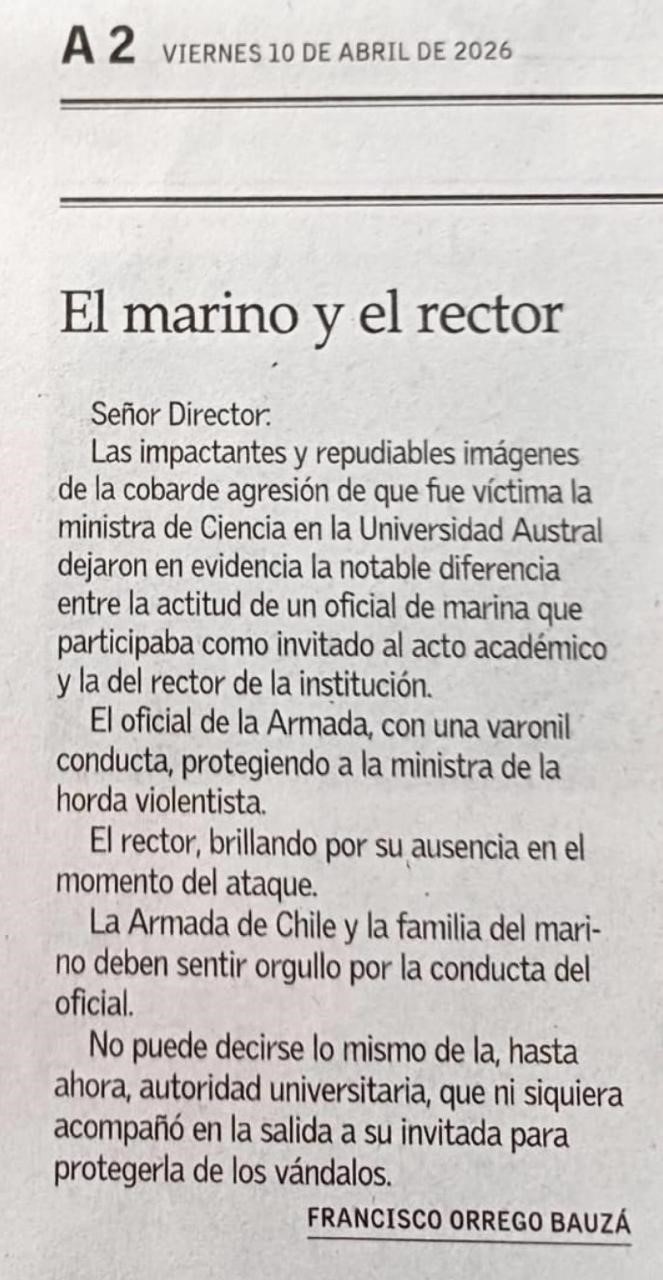 El Marino y el Rector. Francisco Orrego Bauzá. El Mercurio