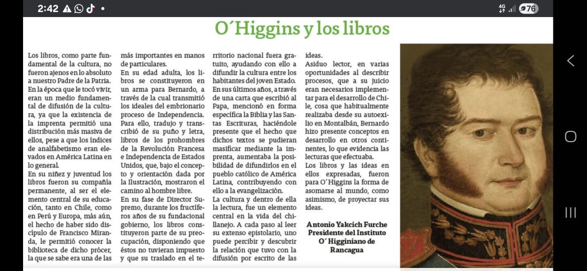 HISTORIA MILITAR Y HÉROES OLVIDADOS News FJDM-C FJDM-C November 24, 2025 November 24, 2025 0 Likes 18 Views 0 O´Higgins y los libros. Antonio Yakcich Furche O´Higgins y los libros. Antonio Yakcich Furche