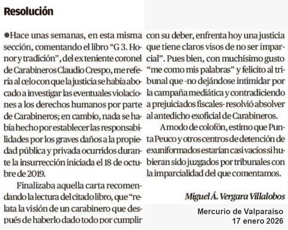 Columna de Opinión News FJDM-C FJDM-C January 17, 2026 January 18, 2026 0 Likes 10 Views 0 Resolución. Miguel Ángel Vergara Villalobos Las opiniones en esta sección, son de responsabilidad de sus autores y no reflejan necesariamente el pensamiento de la Unión de Oficiales en Retiro de la Defensa Nacional